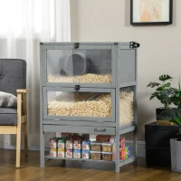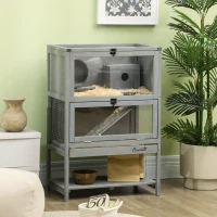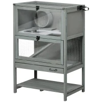 With five layers design, this PawHut wooden hamster cage lets your animal burn off energy by running and climbing in the many platforms of this mansion. It's the ultimate playground for your small pets to enjoy, offering tall height within an inch of four feet. The shelf underneath keeps storage collected and easy to grab when you need it, while the elevated legs keep the material from moisture. The glass front offers easy sight, and with three ladders, the wood hamster house is made for fun. Features: - Large with 5-tier design - Three ladders for exercise in a nearly four foot height - Shelf storage on bottom - Hinged opening roof and two opening panels - Ventilation through mesh on top - Solid wood construction for long term use - Suitable for hamsters, mice and other small animals - Assembly required Specification: - Color: Natural Wood Grain - Material: Wood, PS Plexiglass, Galvanized Wire - Overall Dimensions: 23.5" L x 15.75" W x 47.25" H - Tier Spacing (from top to bottom): 8", 6.25", 8", 6.25" - Ramp Dimensions: 3" W x 4.75" H - Item Label: D51-083 Package Includes: - 1 Play Cage for Hamster - 1 x Manual This PawHut hamster cage is the ultimate playground for your small pets to have. This 2 tiers hamster house offers plenty of room, provides seesaw, running wheel, hut and ladder. Includes a bottom tray, it is convenient for you to clean. The front of the hamster cage for syrian hamster has a glass window for viewing. You can place it anywhere and your little hamsters will have an instant home. The whole unit sits above the floor and is an overall great home for your pets. Features: - 2 tiers provide ample area for exercise, also equipped with seesaw, hut, running wheel and ladder for rest and play. - Bottom tray for quick cleaning. Inner hole offers entrance. - Front plexiglass window enables a direct view to all levels. Openable mesh roofs for easy access. - Elevated design lifts your pet off of the ground, to keep your pet dry and warm. - Made of galvanized wire mesh and fir wood, it ensures stability and provides for maximum rust resistance. - Assembly required Specification: - Color: Natural. - Material: Fir wood, Metal, Plexiglass. - Overall Dimension: 30.75"L x 16.25"W x 23.5"H. - Main house dimension: 14.25"W x 14.5"D x 8.75"H. Top roof: 16.25"W x 17.5"D. - Running cage: 30"W x 15.75"D x 13"H. Top roof: 15.25"W x 13.75"D. - Inner hole: 4.75"L x 4.75"W. - Ladder size: 17"L x 4.75"W. - Tray size: 28.25"L x 14.75"W. - Suitable for 2-3 hamsters. - 1 x Hamster Cage. - 1 x Instruction Manual Create a safe and active space for your pair of hamsters to feel at home with the wheel, seesaw, and large size of this PawHut hamster cage. Given them open room for exercise with this large-capacity space. The shelf underneath keeps storage collected and easy to grab when you need it, opening up cabinets and closets. The glass front offers easy sight, featuring large shatterproof windows. Race two hamsters with the big and wide ramp. An obstacle course could be your next move. Features: - Large and fit for a pair of hamsters - Many toys and amenities including a seesaw, wheel, hut, and ramp - Shelf storage on the bottom - Transparent window provides clear sight to the interior - Shatterproof windows - Big and wide ramp allows racing - Hinged top and front door can be opened for easy access - The sliding tray is convenient for easy cleaning - Assembly required Specification: - Color: Grey - Material: Fir Wood, Steel, Plexiglass - Overall Dimension: 23.5" L x 15.75" W x 35.5" H - Main House Dimension: 23.5"L x 15.75"W x 11.5"H - Top Opening: 23.5" L x 15.75" H - Running Cage: 23.5"L x 15.75"W x 12.5"H - Plexiglass Door: 21.75" W x 9.25" H - Inner Hole Dimensions: 6" L x 5" W - Running Wheel: 5.5" Dia. x 2" W - Ladder Dimensions: 19" L x 4.75" W - Hut Dimensions: 6" L x 4.75" W x 4" H - Seesaw Dimensions 7.5" L x 2.75" W x 1.25" H - Tray Dimensions: 21.75" L x 15" W - Suitable for 2 hamsters - Item Label: D51-283 Package Includes: - 1 x Fun Hamster Cage - 1 x Instruction Manual Discover the joy of a happy, healthy pet with the PawHut dwarf hamster cage. This spacious, two-tier Syrian hamster cage offers ample room for your furry friend to explore and includes all essential life and play accessories. Effortlessly move it anywhere thanks to the four wheels, and keep your supplies organized with the handy storage shelf. This hamster habitat suits hamsters, gerbils, mice, and other small animals. Features: - Spacious hamster habitat provides ample room for hamster comfort - Two-tier design includes necessary life and play accessories - Four wheels with two brakes ensure easy cage repositioning - Storage shelf helps keep supplies organized and accessible - Metal wire construction offers adequate ventilation - Transparent plastic allows precise observation of your pet - Requires assembly Specification: - Color: Nature Wood - Material: Fir Wood, Steel, PET - Overall Dimensions: 34.3" W x 16.9" D x 39.8" H - Inner Space: 34.3" W x 16.9" D x 21.1" H (Upper), 33.5" W x 15.6" D x 8.7" H (Lower) - Second Platform: 33.5" W x 9.8" D - Top Platform: 34.3" W x 8.7" D - Single Door: 17.1" W x 13" H - Hut: 7.9" W x 5.9" D x 5.1" H - Door Hole: 4.7" W x 3.9" H - Ramp: 13.4" L x 3.1" W - Grid: 0.5" L x 0.5" W - Seesaw: 7.9" L x 3.1" W x 1.6" H - Water Bottole: 2.7 oz. - Storage Shelf: 34.3" W x 16.9" D x 4.3" H (Height to the floor) - Wheel: 1.6" Dia. - Maximum Load: 44 lbs.(Shelf), 11 lbs.(Top) - Item Label: D51-443V00ND Package Includes: - 1 x Hamster Cage - 2 x Seesaw - 1 x Water Bottle - 1 x Manual Discover the PawHut hamster cage, where spacious meets fun! This multi-level, wooden hamster cage expands your furry friend's living area with four exciting perches to explore. It includes playful accessories like a seesaw and hut. Transparent PET panels offer a clear view of their antics, enhancing your pet-watching experience. Suitable for dwarf, gerbil, Syrian, and mouse residents. Features: - Spacious design e