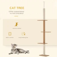 Height is a lovable favorite for cats, and this towering structure is a tall cat tree out there, giving your climbing furry friends an outlet for high-reaching play. The height stays secure with a tension rod that sticks to the ceiling. The surface of the pillar is soft and luxurious for a nice touch against their paws. The platforms have rounded edges for a more comfortable toy. With four platforms, this large cat tree from PawHut makes height a priority. Features: - Reaches a huge 8.5 feet in height and adjusts to offer options - Secures safely to the ceiling with a tension rod - Soft and luxurious carpeted pillar and platforms - Four jump platforms that offer a place to climb - Easy to install Specification: - Color: Grey - Material: P2 Grade Particleboard, Flannel - Overall Dimension: 17" L x 10.75" W x 89.75" - 102.25" H - Top Pipe Adjustable Height: 12.5" - Pipe Size: 0.75" Dia. - Top block size: 4" Dia. - Column Size: 3.75" Dia. - Item Label: D30-296V82GY Package Includes: -1 x cat tree -1 x manual Height is a lovable favorite for cats, and this towering structure is a tall cat tree out there, giving your climbing furry friends an outlet for high-reaching play. Features: - Reaches a huge 8.5 feet in height and adjusts to offer options - Secures safely to the ceiling with a tension rod - Soft and luxurious carpeted pillar and platforms - Four jump platforms that offer a place to climb - Easy to install Specification: - Color: Light Brown - Material: P2 Grade Particleboard, Flannel - Overall Dimension: 17" L x 10.75" W x 89.75" - 102.25" H - Top Pipe Adjustable Height: 12.5" - Pipe Size: 0.75" Dia. - Item Label: D30-296V03BN Package Includes: -1 x Cat tree -1 x Manual Height is a lovable favorite for cats, and this towering structure is a tall cat tree out there, giving your climbing furry friends an outlet for high-reaching play. Features: - Reaches a huge 8.5 feet in height and adjusts to offer options - Secures safely to the ceiling with a tension rod - Soft and luxurious carpeted pillar and platforms - Four jump platforms that offer a place to climb - Easy to install Specification: - Color: Brown - Material: P2 Grade Particleboard, Flannel - Overall Dimension: 17" L x 10.75" W x 89.75" - 102.25" H - Top Pipe Adjustable Height: 12.5" - Pipe Size: 0.75" Dia. - Item Label: D30-296V80BN Package Includes: -1 x Cat tree -1 x Manual.